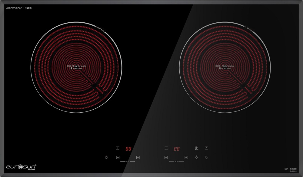 Bếp điện hồng ngoại hai vùng nấu Eurosun EU-IF268S được sản xuất và nhập khẩu nguyên chiếc từ Malaysia. Bếp hồng ngoại Eurosun EU-IF268S sở hữu ưu điểm nổi bật đó là không kén nồi chảo, nhiệt độ ổn định và có thể nướng trực tiếp trên bếp. Với các linh kiện được sản xuất theo tiêu chuẩn châu Âu, bếp điện hồng ngoại Eurosun EU-IF268S đảm bảo chất lượng tốt và bền bỉ với thời gian.