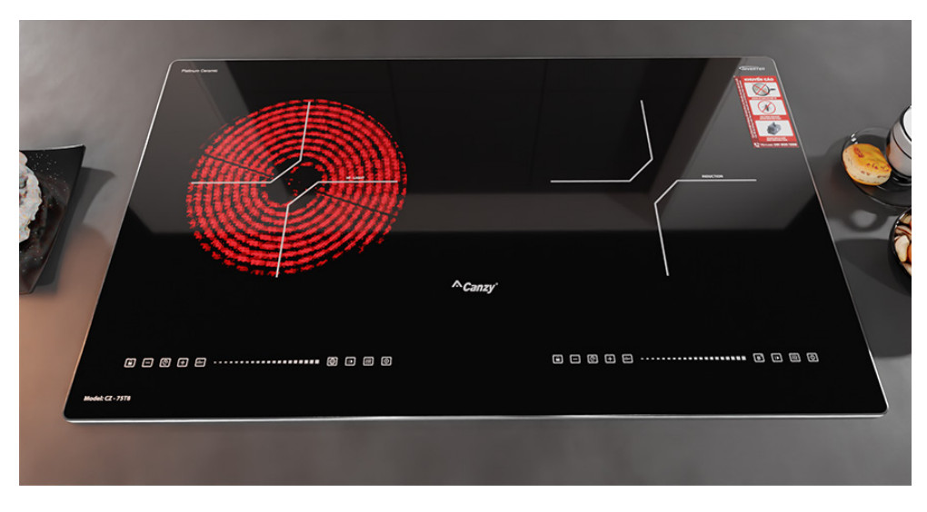 Bếp từ Canzy CZ-75T8 sử dụng mặt kính Platinum Ceramic viền nhôm 4 cạnh, vát cạnh bảo vệ mặt kính.Mặt kính in tráng gương dễ dàng sử dụng. Mặt kính được làm từ chất liệu gốm thủy tinh có khả năng chịu nhiệt lên đến 1000°C, kháng sốc 750°C. Bề mặt kính chịu nóng lạnh cũng như sự thay đổi đột ngột của nhiệt độ. Độ giãn nở vì nhiệt thấp nên bếp hoạt động rất hiệu quả và cách nhiệt. Mặt bếp tản nhiệt nhanh và được cách điện an toàn với các linh kiện điện tử bên trong thân. Bạn có thể yên tâm sử dụng mà không lo bị bỏng hay điện giật.