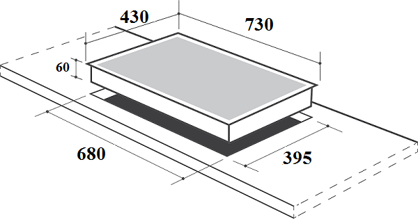 • Kích thước khoét đá: 680x395mm