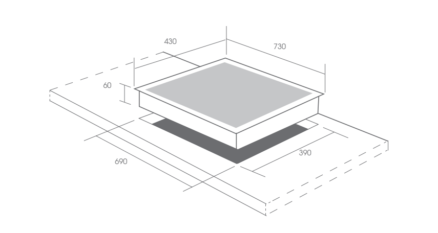 Kích thước bề mặt: R730 x S430 x C60 (mm)