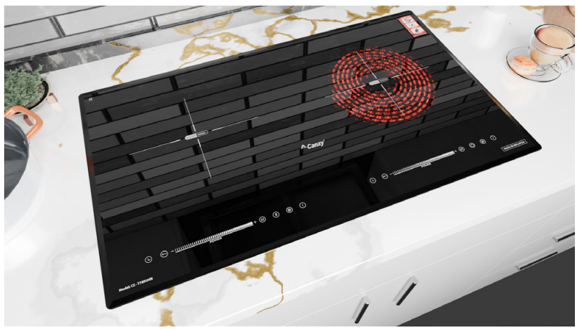 Tự động phát hiện vùng nấu và vùng nấu chỉ nóng lên khi có nồi.