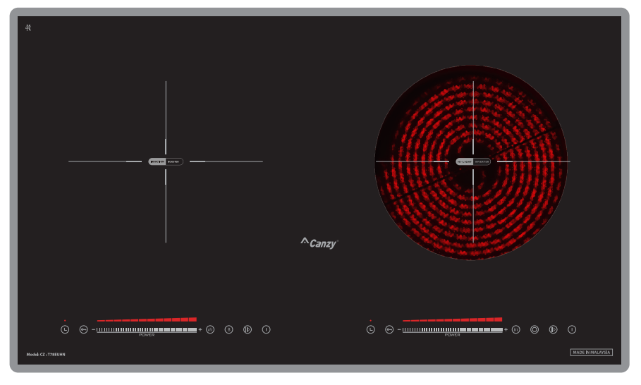 Bếp điện từ Canzy CZ-T78EUHN sử dụng bảng điều khiển cảm ứng dạng trượt Slider Control hiện đại với 9 cấp độ công suất nhiệt độ khác nhau, điều khiển dễ dàng bằng một ngón tay, mọi chương trình nấu đều được hiển thị qua đèn Led sắc nét để bạn điều chỉnh cho phù hợp với các món ăn. Bếp còn được trang bị thêm các chức năng nấu thông minh là tính năng tạm dừng và hâm nóng.