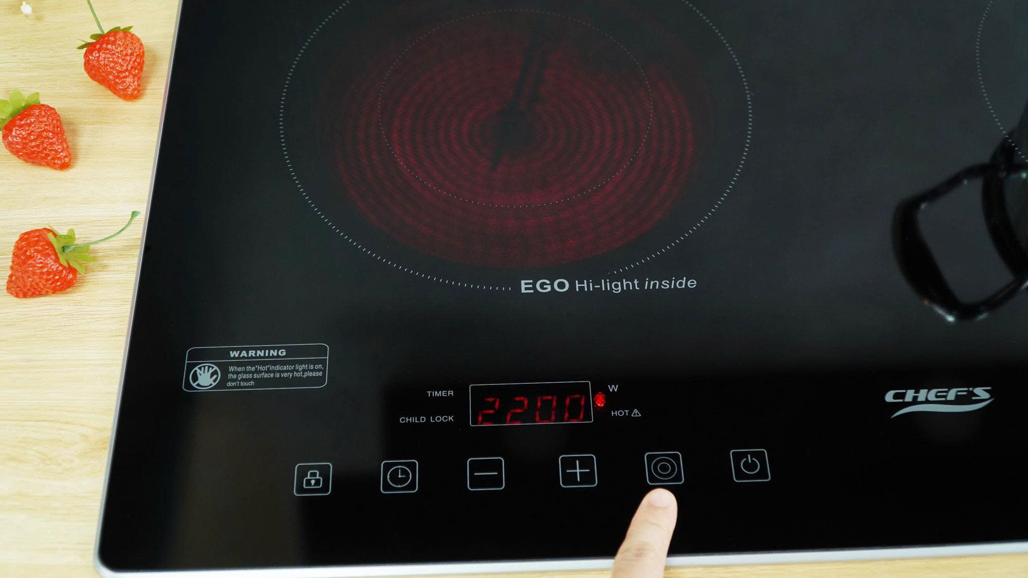 Vùng nấu hồng ngoại: Sử dụng mâm nhiệt E.G.O Hi - light (Đức) là thương hiệu mâm nhiệt số 1 hiện nay cho bếp điện trên thị trường. Mâm nhiệt E.G.O Hi-light có độ hao mòn thấp, làm nóng nhanh, tích hợp phím chọn vùng nấu, phù hợp với nhiều kích thước đáy nồi.