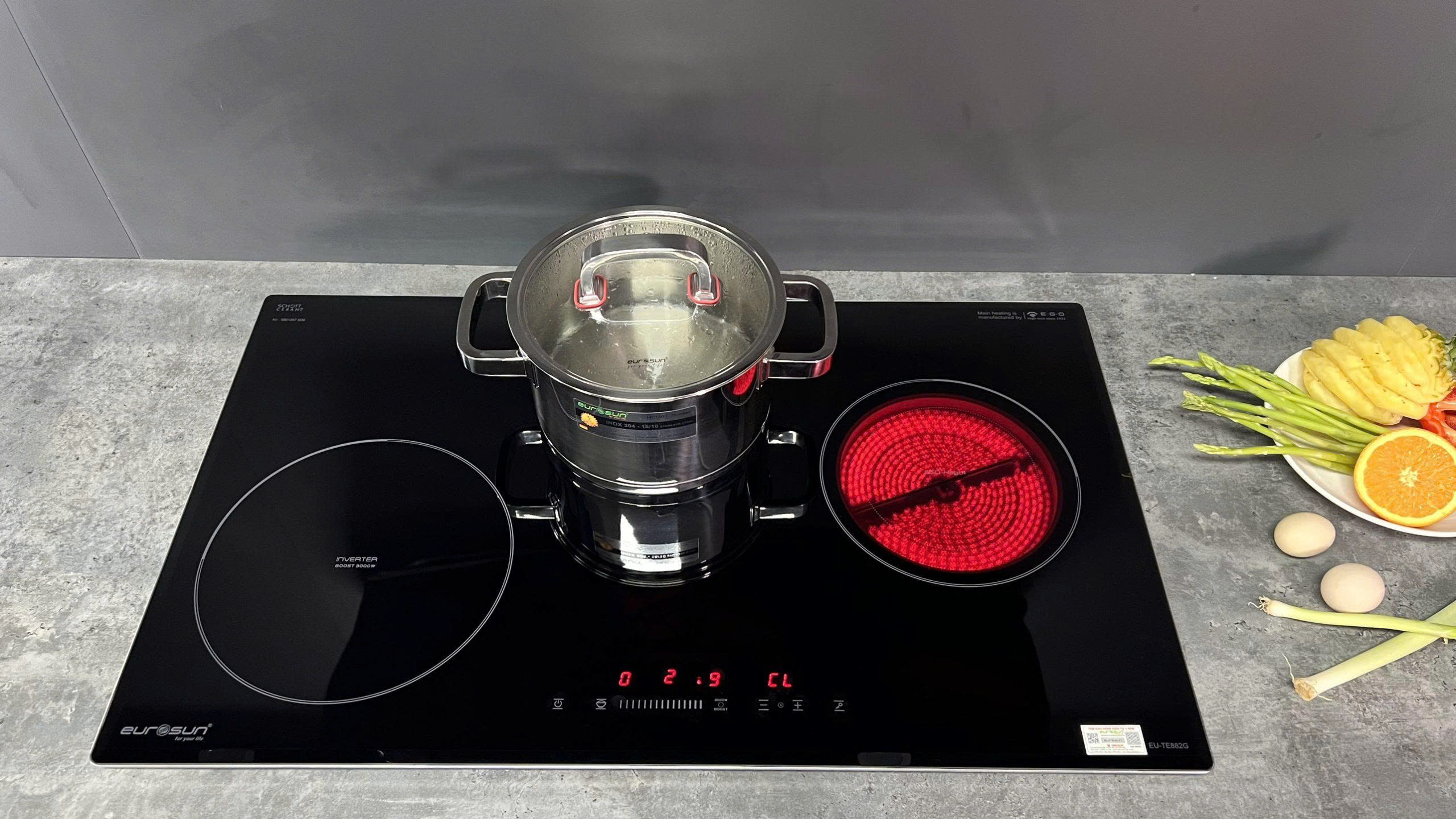 Bếp điện từ Eurosun EU-TE882G là một sản phẩm đặc biệt nổi bật với 3 vùng nấu rộng rãi, tích hợp giữa bếp từ và bếp hồng ngoại. Với thiết kế tối giản, màu sắc tinh tế, mang phong cách thời thượng Bếp từ Eurosun được các tín đồ yêu bếp đánh giá rất cao.