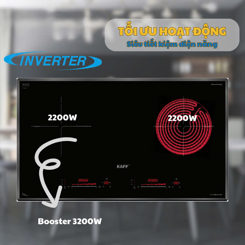Bếp từ Kaff KF-FL68IC NEW PLUS được trang bị với công nghệ Inverter thông minh vượt trội giúp làm giảm lượng tiêu thụ điện của các sản phẩm có sử dụng lõi từ của bếp từ. Ngoài ra công nghệ Inverter còn giúp bếp từ điều chỉnh mức công suất phù hợp để không làm tiêu thụ nhiều điện năng. Bếp từ Kaff KF-FL68IC NEW PLUS với cảm biến thông minh sẽ cố định công suất tiêu thụ điện khi đun nấu, không bật tắt liên tục như các bếp từ thông thường khác (tự động điều chỉnh liên tục để đảm bảo mức nhiệt tương đương bằng với con số hiển thị trên bàn điều khiển).