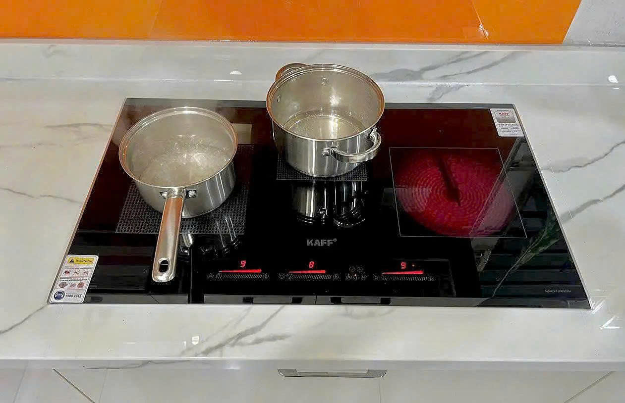 Chức năng chia sẻ công suất của ba vùng nấu tối đa 6000W: Khi một vùng nấu hoạt động ở mức công suất cao, vùng nấu còn lại sẽ tự động điều chỉnh giảm để đảm bảo tổng công suất bếp không vượt quá 6000W, bảo vệ cho các thiết bị điện khác trong gia đình không bị quá tải đường dây.