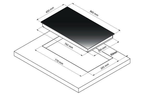 - Kích thước bếp: 860 x 450mm.