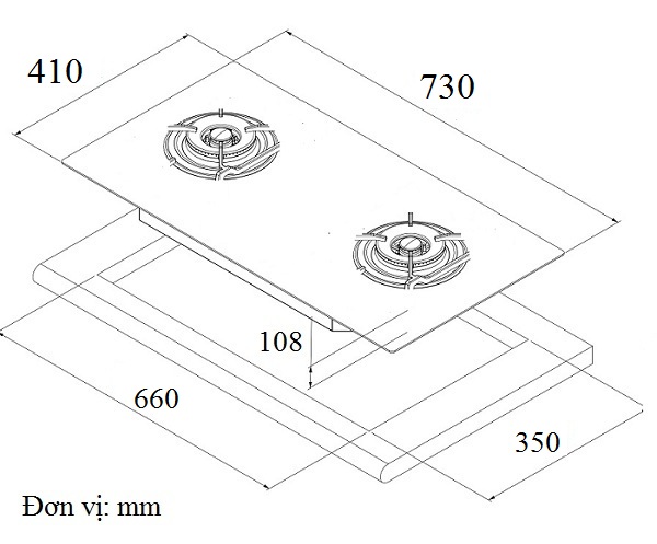 - Kích thước sản phẩm: 730R x 410S x 108mm