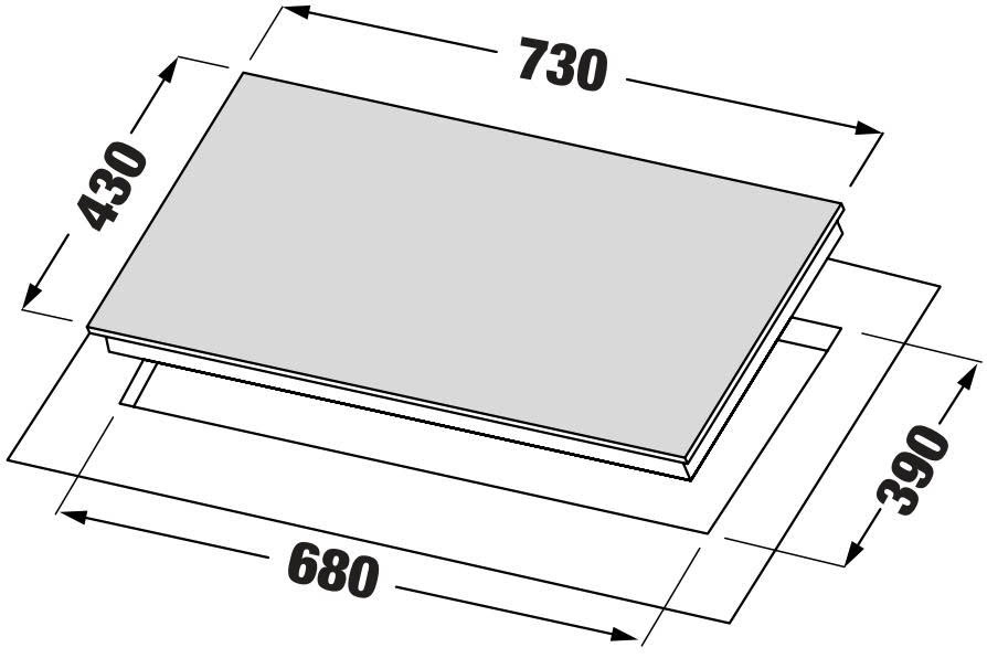 • Kích thước khoét đá: 680x390 mm |