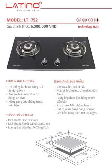 • Lượng Gas tiêu thụ: 0.03 Kg/lò/h