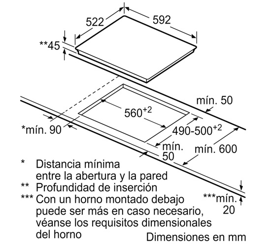 - Kích thước hộc bếp:560-562R x 490-502S x 59C mm