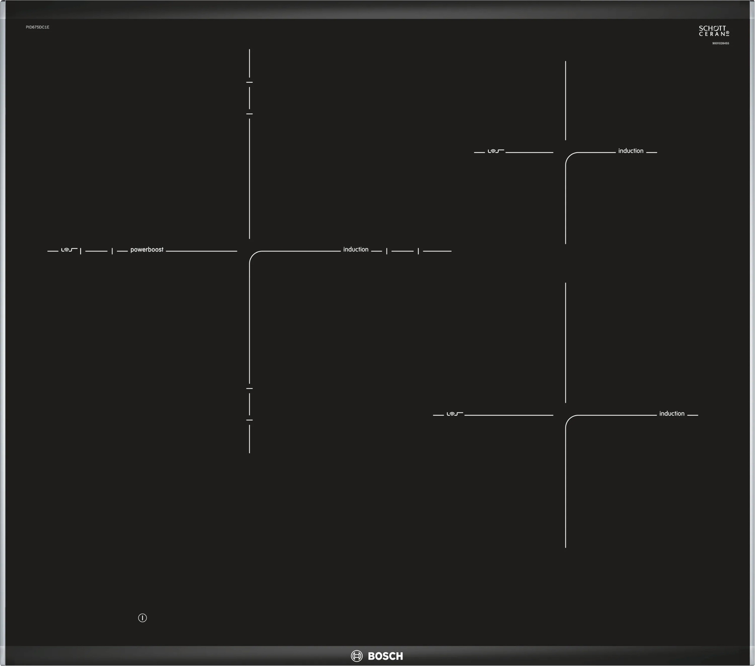 Kích thước và công suất 3 vùng nấu của Bếp từ Bosch PID675DC1E