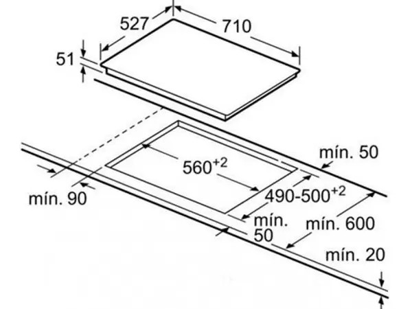 51 x 560 x 490-500 mm |