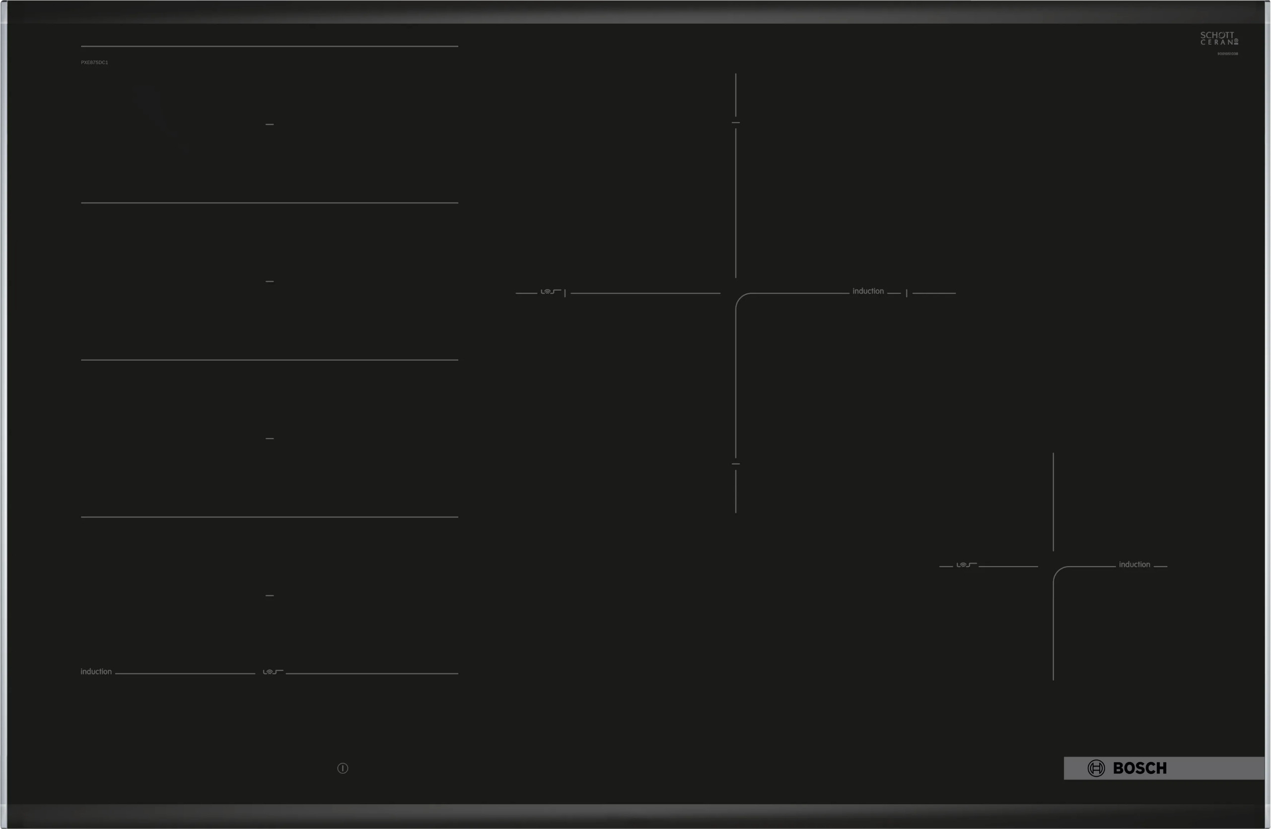 Bếp từ Bosch PXE875DC1E sở hữu thiết kế lớn, chắc chắn, mặt kính đen vát cạnh, chất liệu kính Schott Ceran đảm bảo độ bền và đẹp với thời gian. Kính Schott Ceran là sản phẩm được làm từ hỗn hợp gốm sứ thủy tinh đặc biệt không chứa các chất độc hại như asen hay antimon, chỉ có ở dòng bếp điện cao cấp, có khả năng chịu nhiệt gấp 3 lần kính thông thường. Mặt kính Schott Ceran cứng, không dễ nứt, nổ và có khả năng chống trầy xước.
