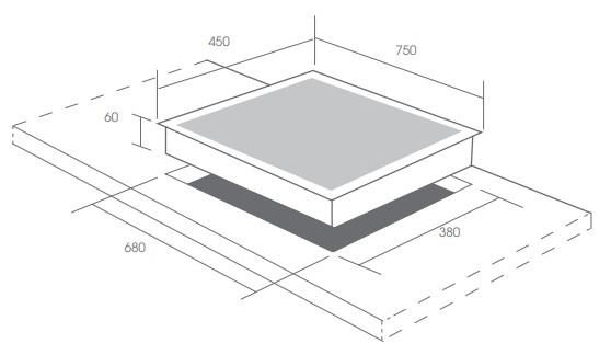 • Kích thước khoét đá: 680x380mm |