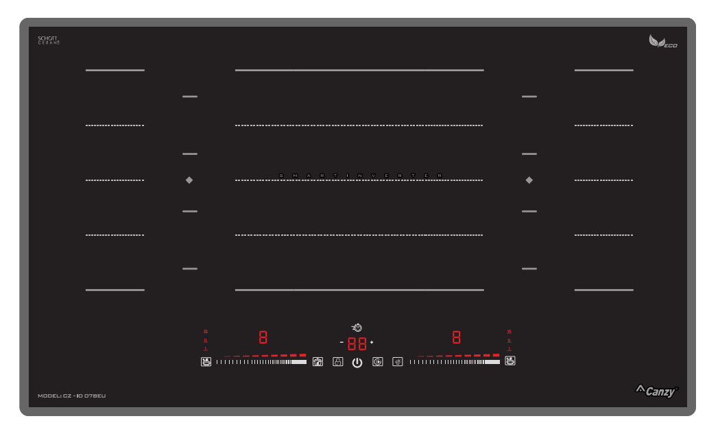 Bếp từ Canzy CZ-ID078EU sử dụng bảng điều khiển cảm ứng dạng trượt Slider Control hiện đại với 9 cấp độ công suất nhiệt độ khác nhau, điều khiển dễ dàng bằng một ngón tay, mọi chương trình nấu đều được hiển thị qua đèn Led sắc nét để bạn điều chỉnh cho phù hợp với các món ăn. Bếp còn được trang bị thêm các chức năng nấu thông minh là tính năng tạm dừng, hâm nóng, rã đông, nấu cơm và chiên rán.