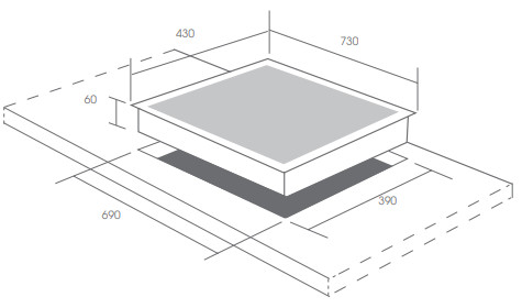 - Kích thước bề mặt: R730 x S430 x C60 (mm)