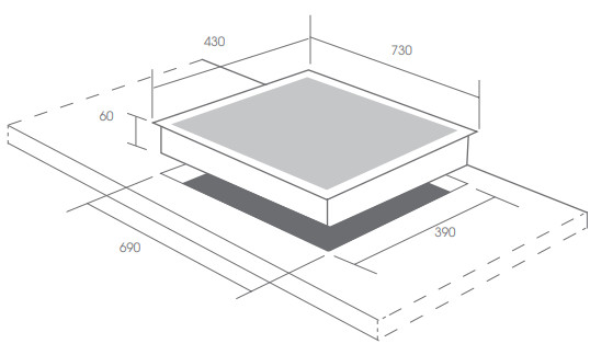• Kích thước khoét đá: 690x390mm |