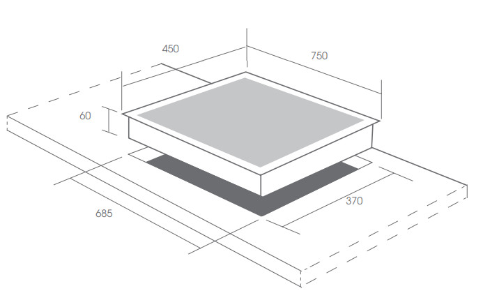 • Bếp đôi: 2 vùng từ, sử dụng mặt kính Schott Ceran phủ sapphire chống xước 99%, vát 4 cạnh bo góc