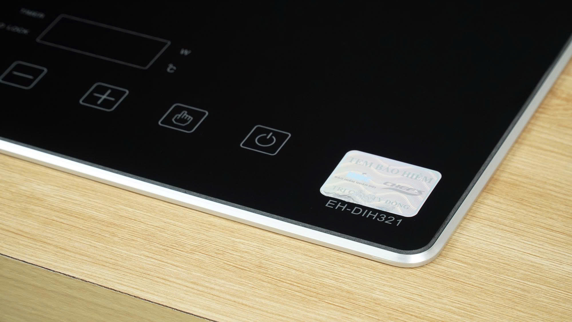 Mặt kính Crystal BLACK trên bếp từ EH-DIH321 được vát cạnh, bo viền nhôm 4 cạnh chắc chắn, giúp bảo vệ mặt kính tối đa trước những va chạm có thể gây nứt vỡ mặt kính. Mặt kính còn có độ chịu nhiệt cao - 1000°C, sốc nhiệt đến 800°C, bề mặt phẳng, mịn dễ dàng vệ sinh, chùi rửa.