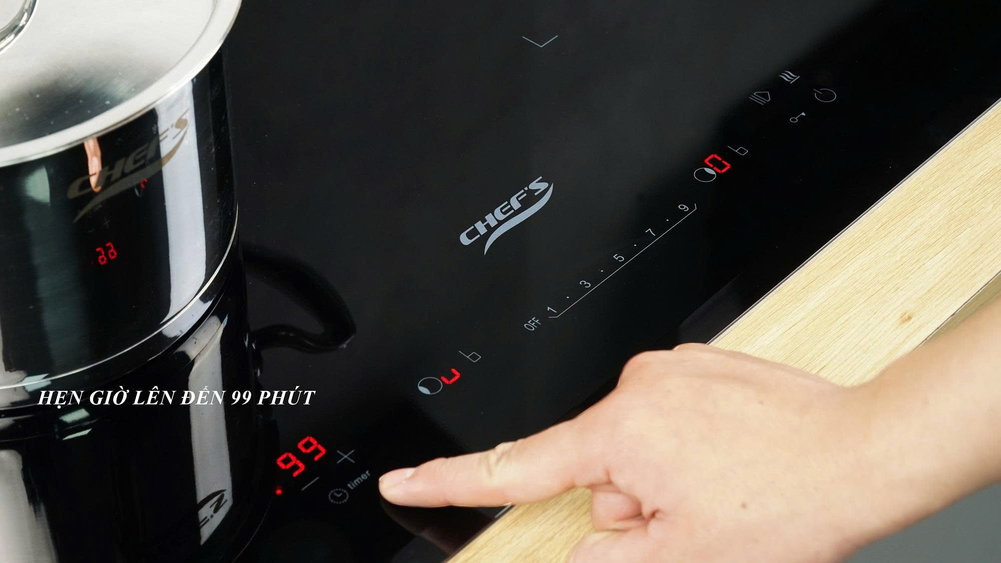 Hẹn giờ nấu: Bếp EH-DIH866G có thể hẹn giờ độc lập cho từng vùng nấu, thời gian hẹn đến 99 phút. Người dùng có thể linh hoạt hẹn giờ nấu cho từng món ăn mà không lo bị quên dẫn đến thức ăn bị quá nhừ hay cháy, khét.