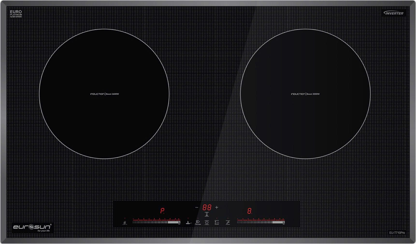 Bếp từ EU-T710Pro Booster cho cả 2 vùng nấu, vùng nấu trái có khả năng kích công suất lên cực đại lên đến 2600W, vùng nấu phải có công suất lên đến 3000W giúp công việc đun nấu trở nên nhanh chóng khi cần thiết, nhưng vẫn đảm bảo an toàn hoạt động cho việc nấu nướng.