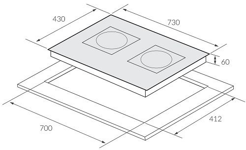 730R x 430S x 60C mm |
