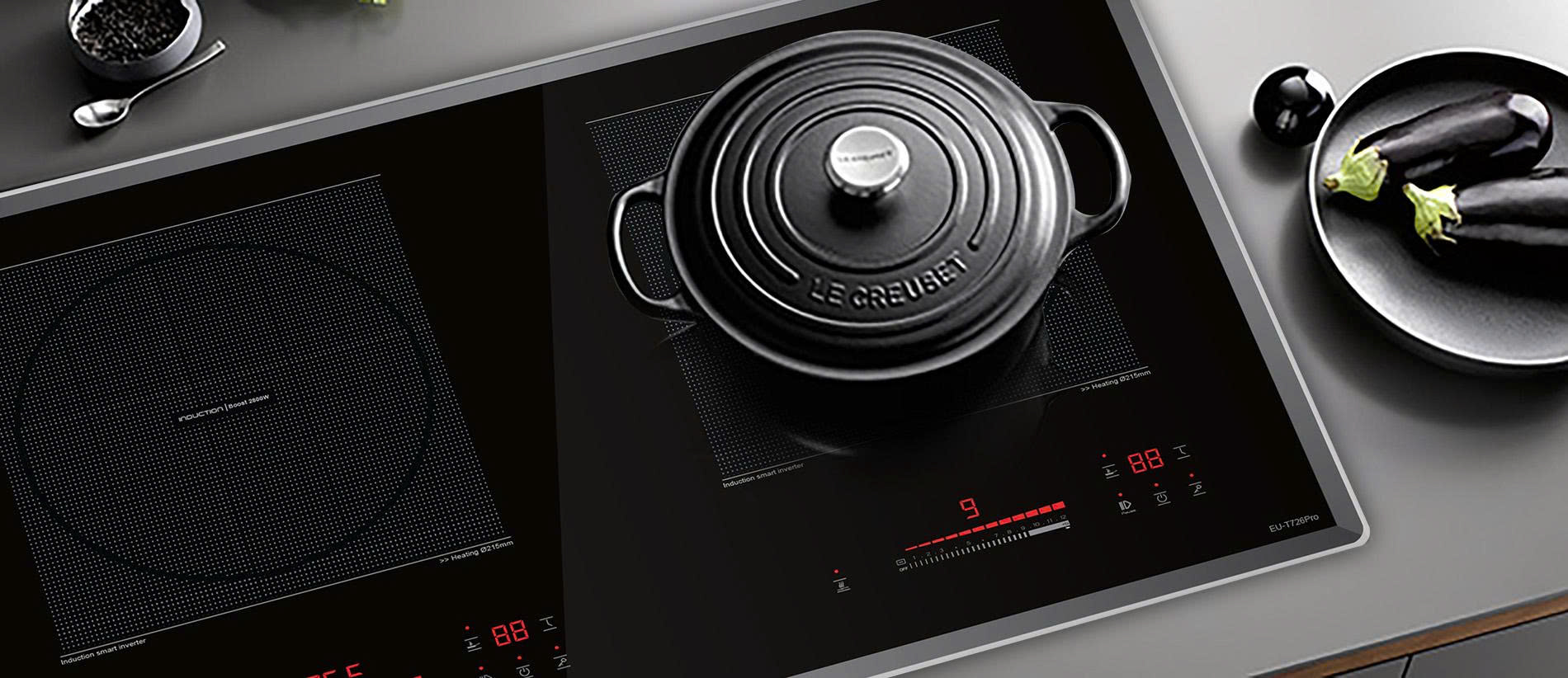 Thay vì bảng điều khiển 9 mức công suất như thông thường, bếp từ EU-T726Pro sở hữu điều khiển trượt cảm ứng 12 công suất giúp bạn lựa chọn thiết lập nhiệt độ với độ chính xác cao. Bảng điều khiển độc lập cho 2 vùng nấu linh hoạt dễ sử dụng, dễ thao tác với cả người cao tuổi và trẻ em