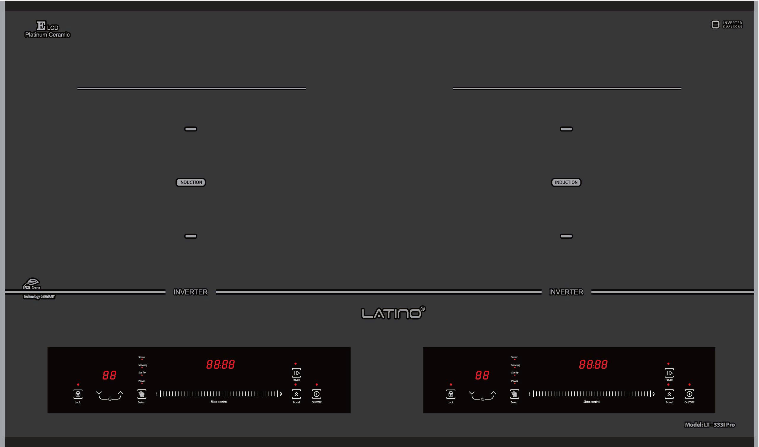 BẾP TỪ LATINO LT-333I PRO là dòng bếp từ đôi sản xuất theo dây truyền công nghệ Châu Âu nhập về Việt Nam theo công nghệ dây chuyền hiện đại nhất, bếp được trang bị các tính năng thông minh của một chiếc bếp từ cao cấp như: tiết kiệm điện, hẹn giờ, bảng điều khiển cảm ứng, tự động ngắt,…và rất nhiều ưu điểm vượt trội mà bất kì ai cũng muốn được sở hữu.