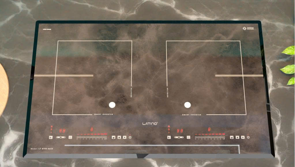 Bếp từ LATINO LT-979V - 62ID gồm 2 vùng nấu với tổng công suất 5600W. Vùng nấu từ trái có công suất 2000W khi kích hoạt tính năng nấu siêu nhanh Booster công suất lên tới 2800W. Vùng nấu từ phải có công suất 2000W khi kích hoạt tính năng nấu siêu nhanh Booster công suất lên tới 2800W. Chỉ trong chốc lát sau khi kích hoạt tính năng này, nhiệt lượng trên vùng nấu từ tăng lên công suất tương đương với mức nhiệt lượng lớn nhất. Do đó, các món ăn được nấu chín nhanh hơn, tiết kiệm thời gian vào bếp cho chị em nội trợ. Chức năng Booster nấu siêu nhanh, tuy nhiên thời gian tối đa mặc định dùng chức năng này là 10 phút / lần tránh quá tải.