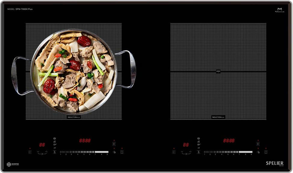 Bếp từ SPELIER SPM T666N được tích hợp chức năng tự nhận diện vùng nấu, khi ta đặt nồi lên 1 trong 2 vùng nấu sau đó ấn nút khởi động bếp sau thời gian 1-2 giây bếp sẽ tự động tìm vùng nấu đã có nồi, ta chỉ việc điều chỉnh mức công suất to nhỏ theo ý muốn mà không phải thao tác chọn vùng nấu như bếp thông thường. Công nghệ Dual Core Inverter được áp dụng trên bếp từ SPELIER SPM T666N có khả năng phản ứng thay đổi công suất theo điều khiển ngay tức thì, khi người dùng điều chỉnh tăng giảm nhiệt độ đun nấu, bếp điều chỉnh thay đổi tức thì về mức nhiệt độ mong muốn.