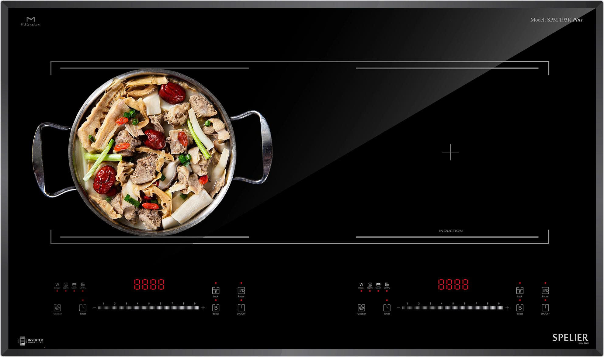 Bếp từ SPELIER SPM T93N gồm 2 vùng nấu với tổng công suất 5200W. Vùng nấu trái có công suất 2200W khi kích hoạt tính năng nấu nhanh Booster công suất lên tới 2600W. Vùng nấu phải có công suất 2200W khi kích hoạt tính năng nấu nhanh Booster công suất lên tới 2600W. Chỉ trong chốc lát sau khi kích hoạt tính năng này, nhiệt lượng trên vùng nấu từ tăng lên công suất tương đương với mức nhiệt lượng lớn nhất. Do đó, các món ăn được nấu chín nhanh hơn, tiết kiệm thời gian vào bếp cho chị em nội trợ. Chức năng Booster nấu siêu nhanh, tuy nhiên thời gian tối đa mặc định dùng chức năng này là 10 phút / lần tránh quá tải.