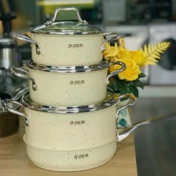 Bộ nồi B-gem  thương hiệu là sự lựa chọn cần thiết cho gia đình của bạn. Không cần phải mất quá nhiều thời gian trong việc tìm hiểu nồi nấu, mọi nhu cầu nấu ăn cơ bản sẽ được đáp ứng đầy đủ qua bộ nồi trên.  Bộ nồi nấu Bgem là trợ thủ đắc lực nhất giúp việc nấu nướng được dễ dàng hơn, đồng thời đem đến nhiều sự tiện ích trong cuộc sống.