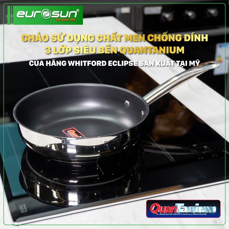 Chảo chống dính của Eurosun được sử dụng chất men chống dính 3 lớp siêu bền Quantanium bởi hãng Whitford sản xuất tại Mỹ. Chất chống dính Whitford có thành phần PTFE, phân hủy ở nhiệt độ trên 440 độ C, không chứa các chất PFOA, APEO, độ chống dính cao, có khả năng chống chịu tốt với môi trường axit, kiềm, dung môi hữu cơ, dầu. Vì vậy, sản phẩm chảo trong bộ EUROSUN MC1608- Passion rất an toàn, bền chắc và có tuổi thọ cao.