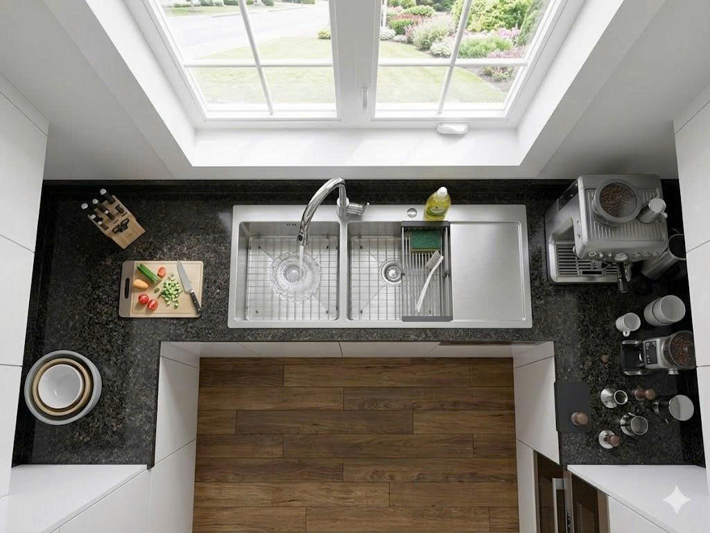 Hố đôi rộng rãi: Sử dụng một bên để ngâm thực phẩm và một bên để rửa xà phòng, giúp công việc nội trợ nhanh chóng và vệ sinh hơn.