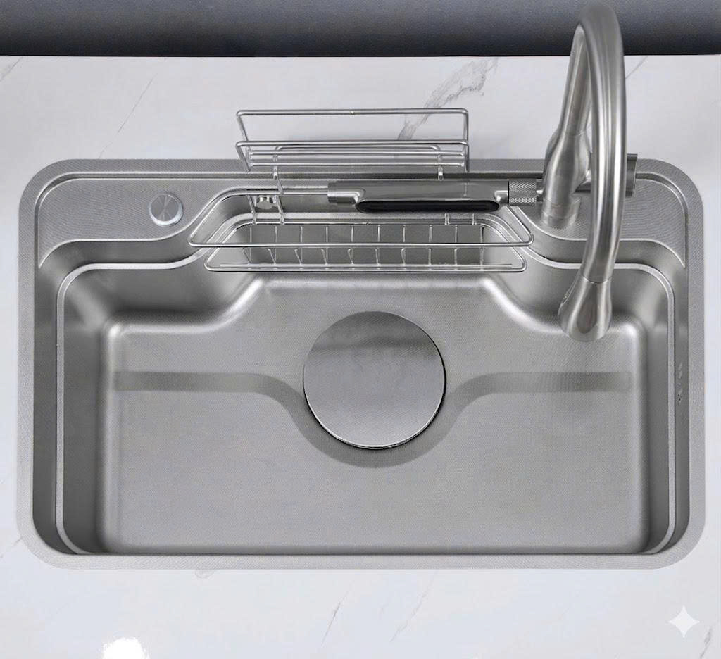 Chậu nhỏ Inox: Dùng để ngâm thực phẩm, giúp tiết kiệm nước tối đa.