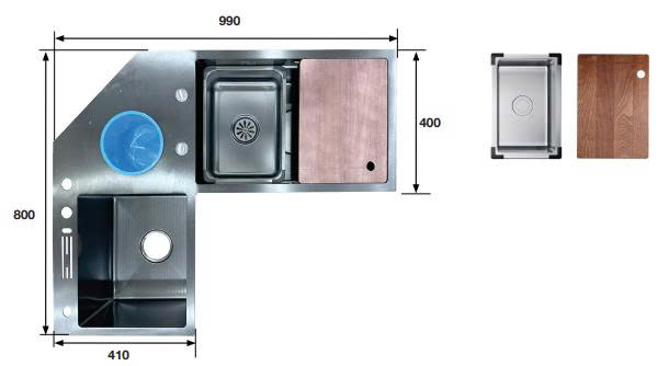 Với kích thước 990D x 800R mm, chậu rửa Kaff KF-ZJ9980-B phù hợp với nhiều kiểu dáng bếp khác nhau. Độ sâu bồn lên đến 220mm giúp bạn thoải mái rửa thực phẩm, chén bát mà không lo nước bắn ra ngoài, đảm bảo không gian luôn sạch sẽ.