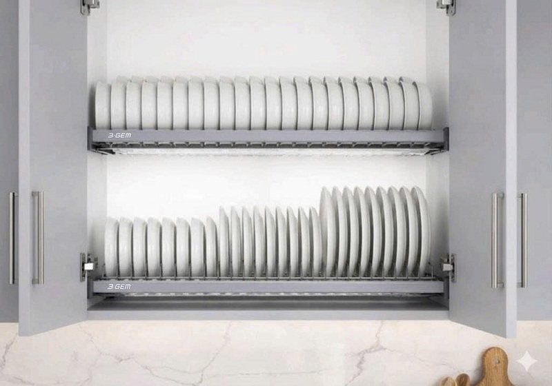 Dễ dàng lắp đặt: Phù hợp cho cả tủ bếp đóng mới hoặc thay thế cho các bộ giá bát cũ đã xuống cấp.