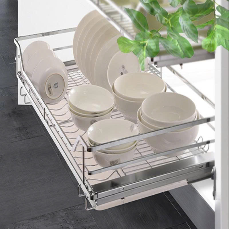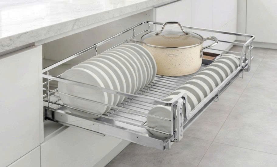 Dễ dàng thao tác: Chỉ cần một cú kéo nhẹ, toàn bộ bát đĩa sẽ hiển thị ngay trước mắt, giúp chị không phải cúi sâu vào trong lòng tủ tối tăm để tìm đồ.