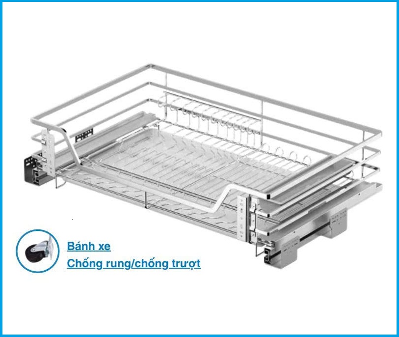 Hệ dẫn hướng chống rung & Giảm chấn: Tích hợp bộ ray trượt giảm chấn cao cấp, giúp kệ chuyển động ra vào cực kỳ mượt mà. Đặc biệt, hệ thống chống rung giúp bát đĩa không bị xô lệch hay gây ra tiếng ồn khi đóng mở mạnh.