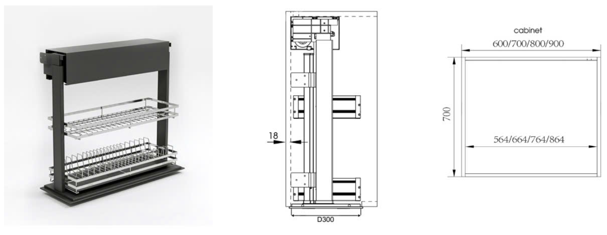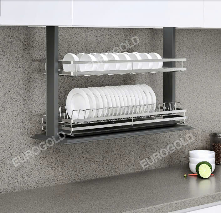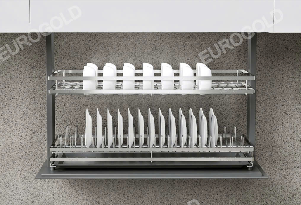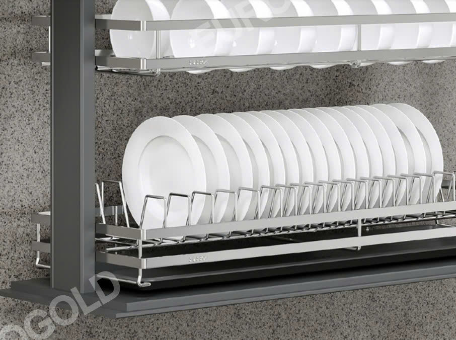 Cấu tạo 2 tầng với 2 chức năng: tầng trên úp bát, tầng dưới úp đĩa. Các thanh nan được cải tiến trong thiết kế và kích thước được đo lường chuẩn xác. Giúp cho bát đĩa luôn được úp thẳng đứng, không bị xô lệch hay bị rơi khỏi giá trong quá trình nâng lên/ hạ xuống từ tủ bếp trên.