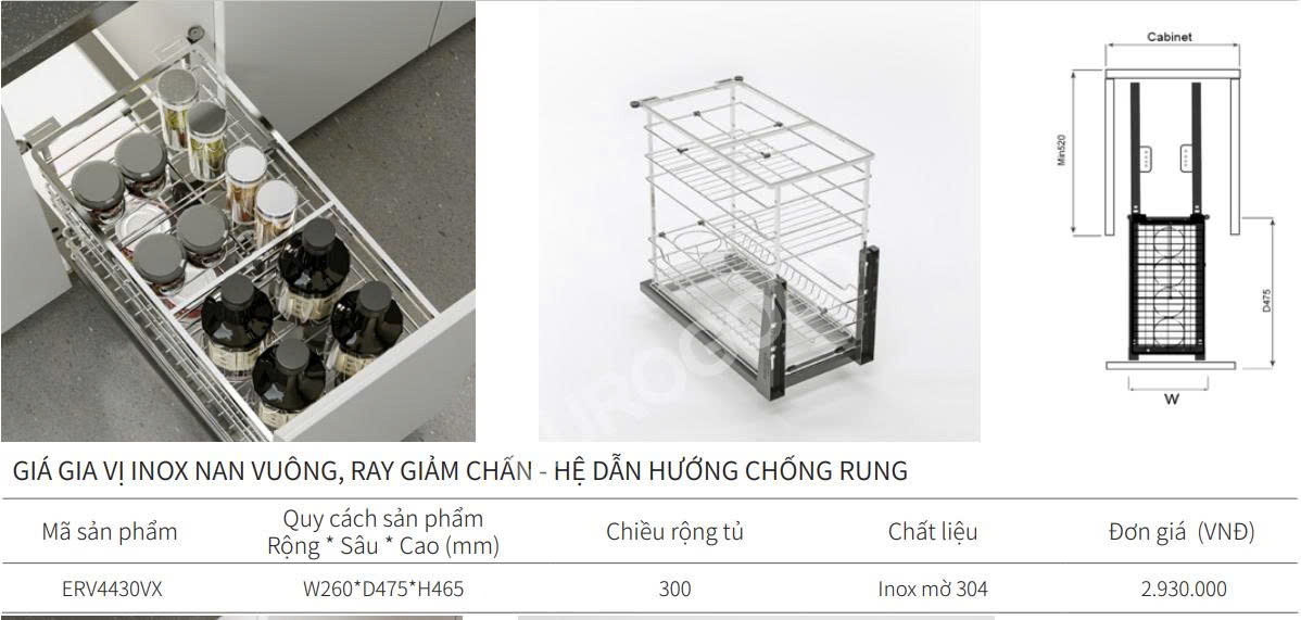 Sản phẩm đã chinh phục được hoàn toàn cả những vị khách khó tính nhất. Không những vậy, giá bán của giá gia vị đa năng Inox 304 nan vuông 2200mm 250mm 300mm 350mm 400mm ERV4420VX | ERV4425VX | ERV4430VX | ERV4435VX | ERV4440VX này rất hợp lý, phù hợp với mức chi tiêu của các gia đình Việt.