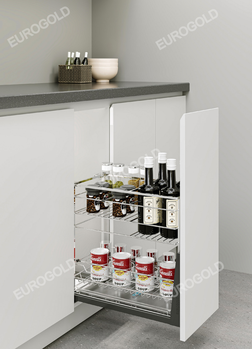 Giá gia vị tủ dưới Inox 304 nan vuông của thương hiệu Eurogold có nhiều loại kích thước tùy thuộc vào không gian, diện tích và nhu cầu sử dụng của mỗi gia đình.