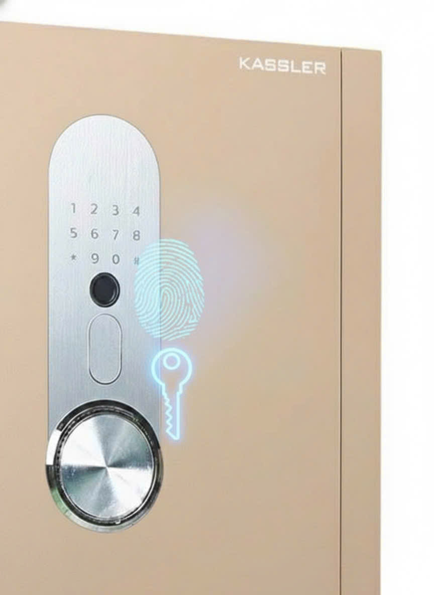 Để người dùng thêm an tâm bảo quản tài sản, Kassler đã kết hợp 3 phương thức bảo mật: vân tay, mã số ảo và chìa khoá cơ. Tay nắm ẩn được đặt ở vị trí trung tâm két sắt, chỉ mở ra khi nhập chính xác mật khẩu. Sau khi khoá két, tay nắm sẽ tự động thu về.