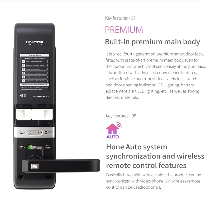 Unicor Hightech được thành lập năm 1970, một trong những thương hiệu khóa cửa lâu đời nhất trên thị trường Hàn Quốc hiện nay. Những sản phẩm khóa cửa điện tử cao cấp và lịch sử phát triển của Unicor Hightech chính là một minh chứng rõ ràng nhất cho chất lượng sản phẩm của Unicor.