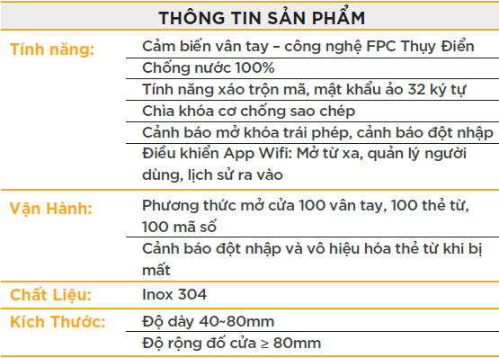 Với cảm biến vân tay FPC được trang bị trong đầu đọc vân tay của khóa thì các dấu vân tay giả mạo sẽ được phát hiện ngay. Khi không cảm nhận đúng nhiệt độ và áp suất của dấu vân có lưu trong khóa thì việc mở được cửa là hoàn toàn không thể. Vậy nên việc mở khóa chỉ có thể do thực thể sống, chính người có lưu dấu vân mới có thể mở được