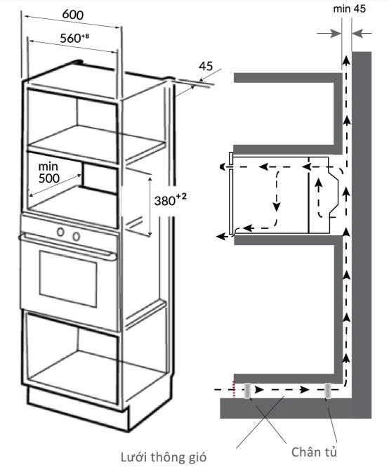 Kích thước âm tủ: R570 x S510 x C380 (mm) |