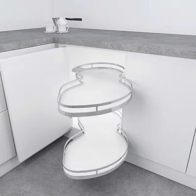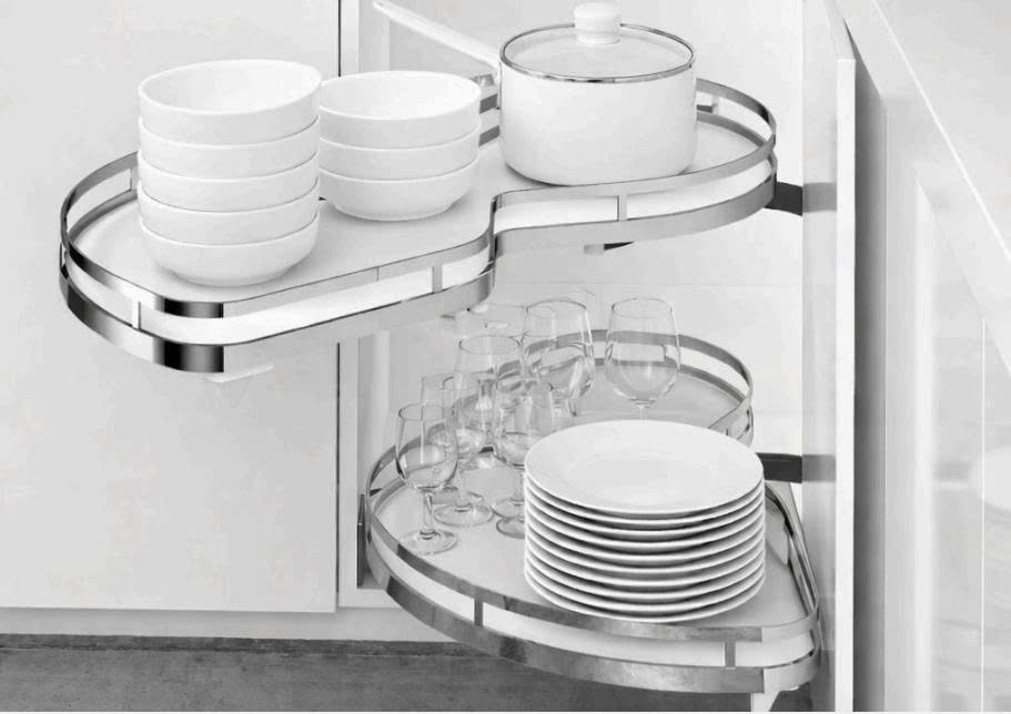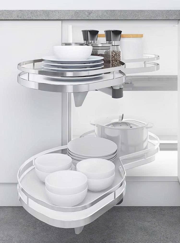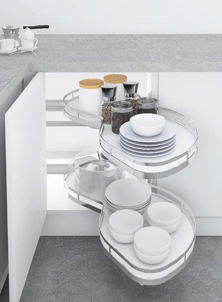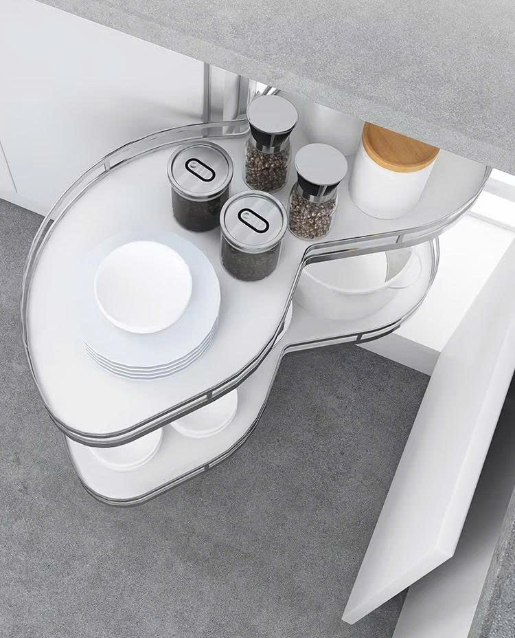 Tận dụng diện tích: Hình dáng lá được tính toán để ôm sát góc tủ, quý khách có thể thoải mái sắp xếp các bộ nồi chảo từ lớn đến nhỏ mà không lo va chạm vào thành tủ khi xoay.