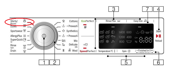 Chương trình Shirt / Blouse là chương trình được Máy giặt BOSCH WAT24480SG thiếp lập dành riêng cho áo sơ mi /Blouse tổng hợp. Chương trình được vận hành với các cài đặt cơ bản, quần áo được giặt nhẹ nhàng hơn so với một chương trình chăm sóc dễ dàng thông thường, do đó làm giảm sự hình thành các nếp gấp, nếp nhăn của áo và làm cho ủi dễ dàng hơn.