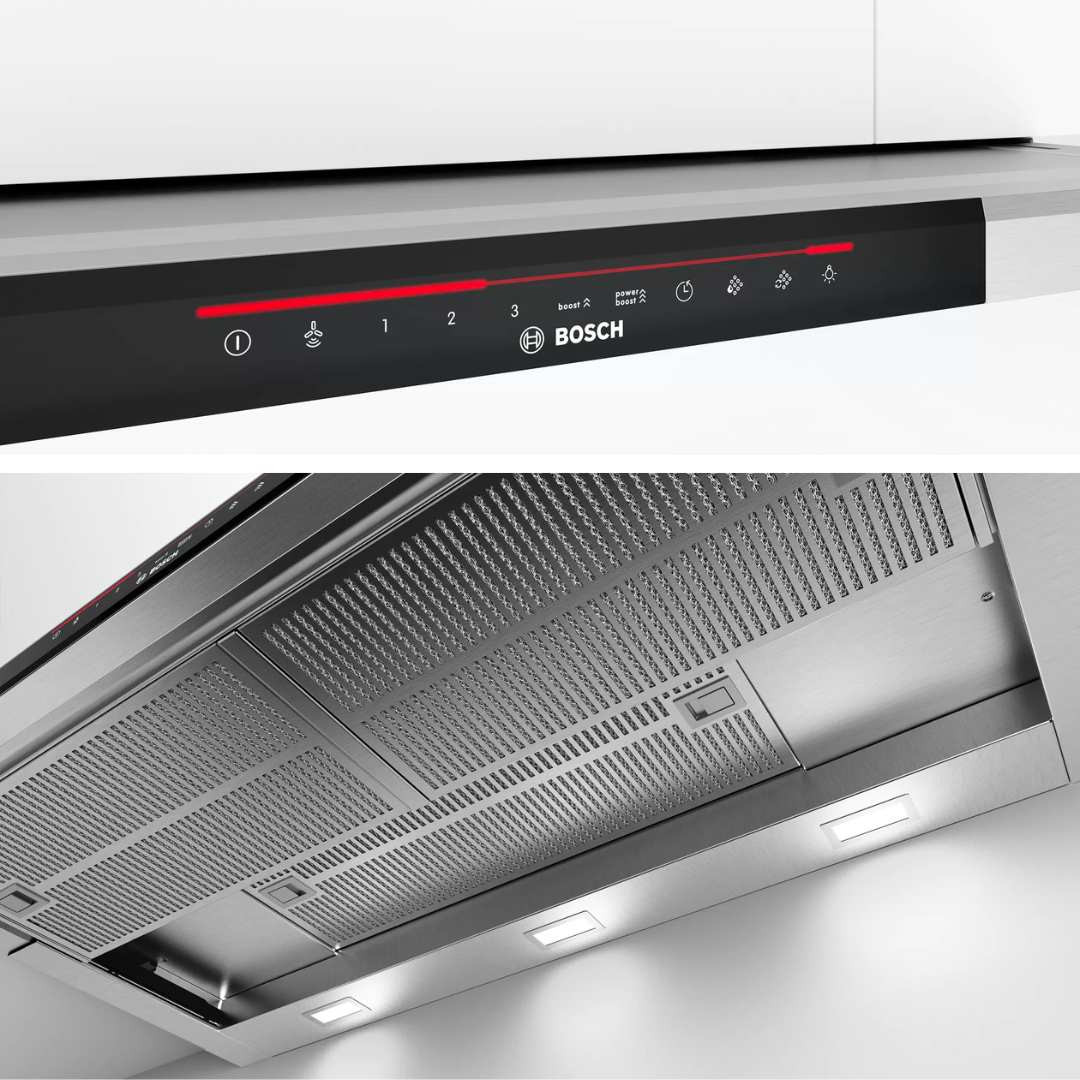 Bạn có thể lựa chọn mức độ hút phù hợp với lượng mùi và khói khi nấu ăn để đảm bảo sạch mùi cho không gian bếp nhà bạn. Máy hút mùi âm tủ bosch DFS097K51 Với công suât lớn nhất (mức 3) là 677 m³ / h và độ ồn (mức độ 3) 56dB. Đồng thời bạn có thể chọn bấm nút đèn chiếu sáng để quan sát khi nấu ăn được dễ dàng hơn.